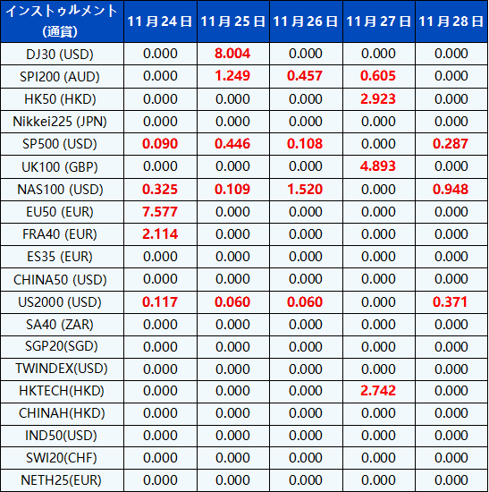 次のインデックスCFDの配当金は、今後の除配当日によって調整されることをご了承ください。インデックスCFDを取引するためのコメントは、次の形式 “Div&<Product Name>&<Net Volume>” で表示され、配当支払日の前日の終了後の残高に表示されます。