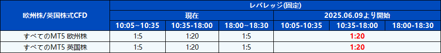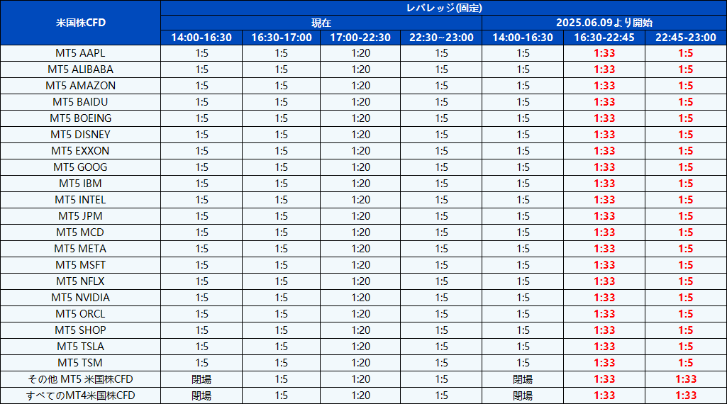 2025年6月9日より、競争力のさらなる最適化と取引環境の改善のため、すべての株式CFD商品のレバレッジが調整されますので、ご注意ください。
