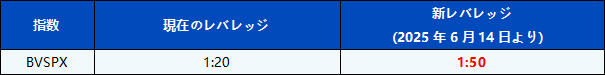 BVSPXのレバレッジは2025年6月14日より最適化され、競争力をさらに高め、取引環境を改善する予定です。
