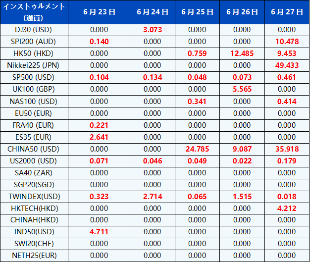 次のインデックスCFDの配当金は、今後の除配当日によって調整されることをご了承ください。インデックスCFDを取引するためのコメントは、次の形式 “Div&<Product Name>&<Net Volume>” で表示され、配当支払日の前日の終了後の残高に表示されます。
