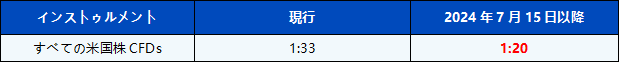 2024年7月15日から、すべての米国株CFD商品のレバレッジが調整され、競争力の最適化と取引環境の改善が図られました。