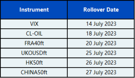Please be advised that the following CFD instruments will be automatically rolled over as per the dates in the table below. As there can be a pricing difference between old and new futures contracts, we recommend clients to monitor their positions closely and manage positions accordingly.