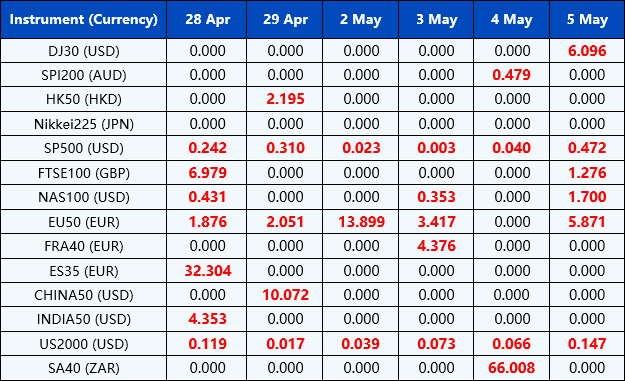 Please be advised that the following instruments’ trading hours and market session times will be affected by the upcoming May holidays.