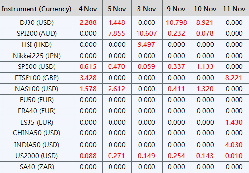 Please note that the above data are subject to changes. Please refer to MT4/MT5 for details.