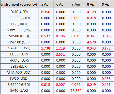 Please note the above data are subject to changes. Please refer to MT4/MT5 for details.