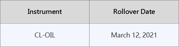 Please be advised that the following CFD instrument will be automatically rolled over as per the date in the table below. As there can be a pricing difference between old and new futures contracts, we recommend clients to monitor their positions closely and manage positions accordingly.