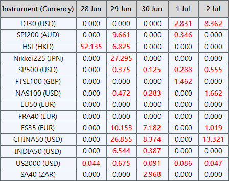 Please be advised that the dividends of the following index CFDs will be adjusted by upcoming ex-dividend dates. The comment for trading index CFDs will be in the following format “Div&<Product Name>&<Net Volume>” which show in the balance after the close of the day before the dividend payment date.