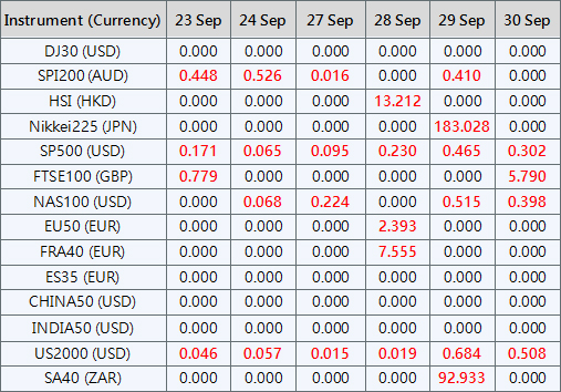 Please be advised that the dividends of the following index CFDs will be adjusted by upcoming ex-dividend dates. The comment for trading index CFDs will be in the following format “Div&<Product Name>&<Net Volume>” which show in the balance after the close of the day before the dividend payment date.