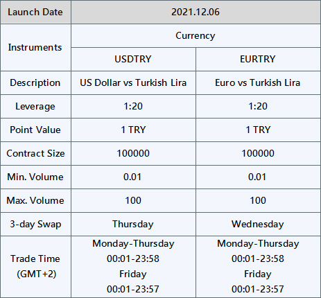 We are pleased to announce that Pacific Union will launch the new product of Forex pairs USDTRY and EURTRY on 6th December 2021 to provide clients with a broader portfolio of products.
