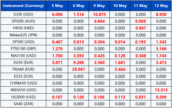 Please be advised that the dividends of the following index CFDs will be adjusted by upcoming ex-dividend dates. The comment for trading index CFDs will be in the following format “Div& <Product Name>&<Net Volume>”which show in the balance after the close of the day before the dividend payment date.