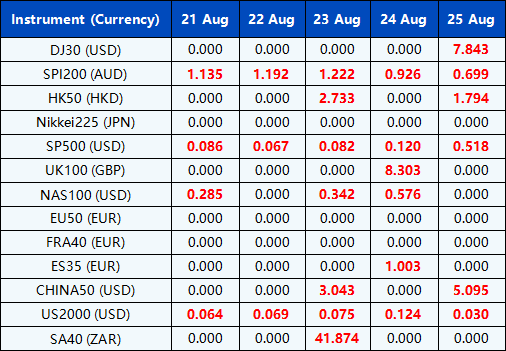 Please note the above data are subject to changes. Please refer to MT4/MT5 for details.
