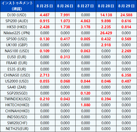 次のインデックスCFDの配当金は、今後の除配当日によって調整されることをご了承ください。インデックスCFDを取引するためのコメントは、次の形式 “Div&<Product Name>&<Net Volume>” で表示され、配当支払日の前日の終了後の残高に表示されます。