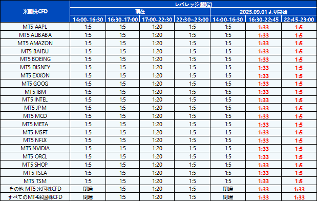 2025年9月1日より、競争力のさらなる最適化と取引環境の改善のため、すべての株式CFD商品のレバレッジが調整されますので、ご注意ください。