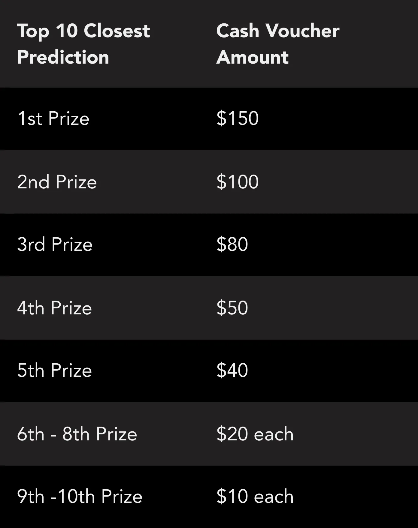 If there are two or more people with the same predictions, the one who predicted earlier will be ranked first.